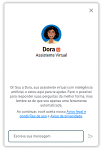 Além disso, sabemos que inteligência artificial pode ser um tema assustador polêmico a alguns usuários, sendo repudiado por outros. Dessa maneira, é imprescindível que o usuário tenha consciência e conhecimento que está tratando com uma ferramenta que utiliza de IA generativa. Conforme a imagem apresentada anteriormente, sempre que a Dora AI inicia uma interação ela informa ao usuário que utiliza desta tecnologia, visando a transparência e clareza.